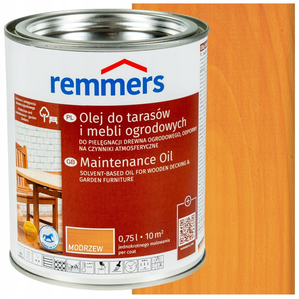 Olej do tarasów i mebli ogrodowych REMMERS to wysokiej jakości, rozpuszczalnikowy olej dekoracyjno-ochronny, stworzony specjalnie do ochrony i pielęgnacji drewnianych powierzchni na zewnątrz. Idealnie nadaje się do drewna stosowanego zarówno w pomieszczeniach, jak i na otwartej przestrzeni. Jego unikalna formuła działa hydrofobizująco, chroniąc drewno przed wilgocią i przedłużając jego żywotność. Dzięki temu olejowi Twoje drewniane meble ogrodowe i tarasy będą wyglądać pięknie przez wiele lat.